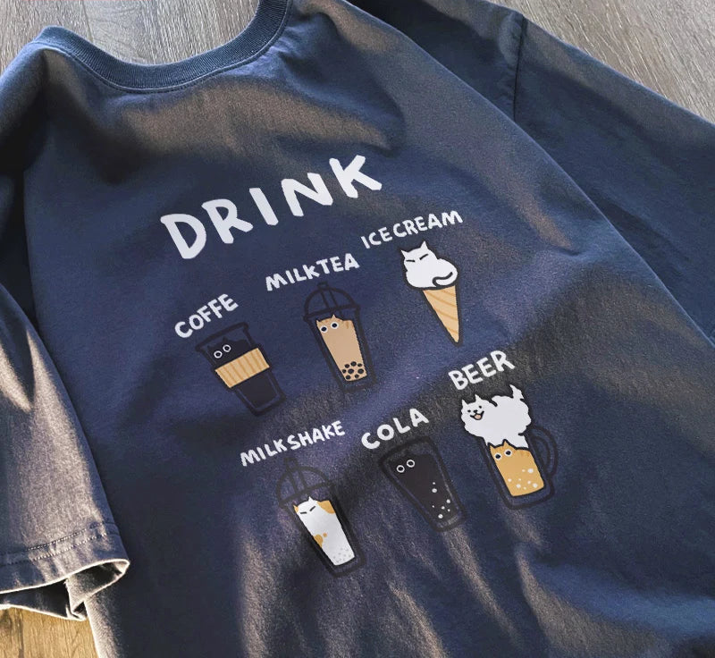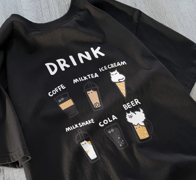 This Cat Café Graphic T-Shirt blends playful kawaii Japanese style with everyday comfort. Featuring an original cartoon cat beverage design, it’s perfect for cat lovers, café vibes, anime aesthetics, and couples who love matching looks.